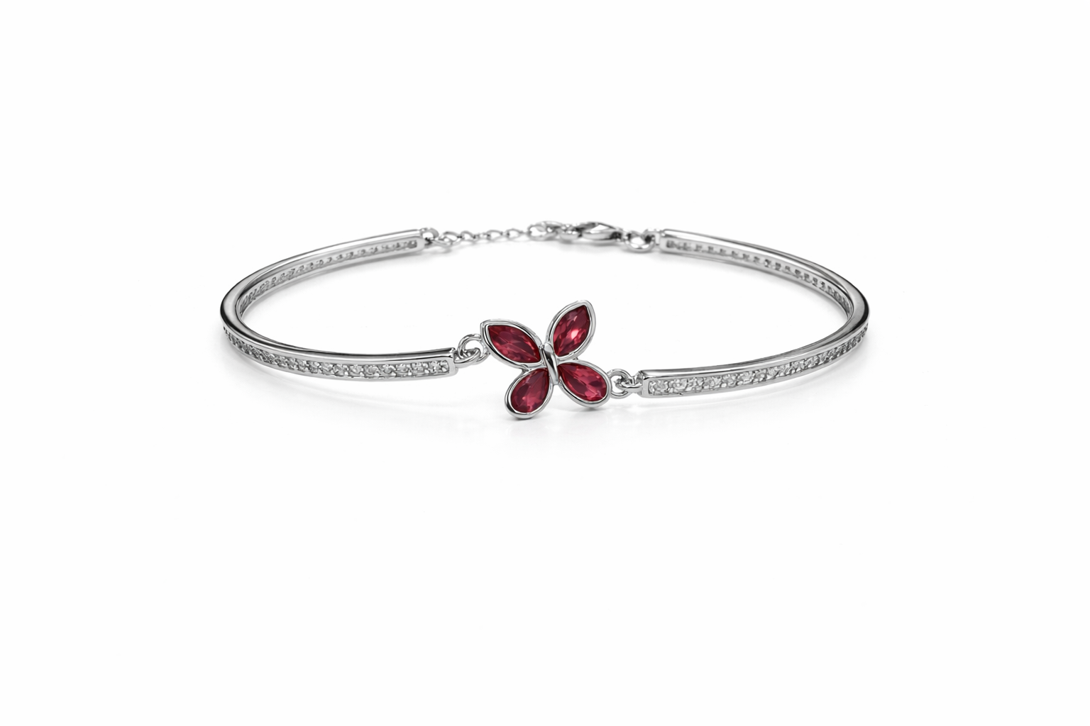 Design: Butterfly Motif with Deep Ruby-Red Marquise-Cut Stones