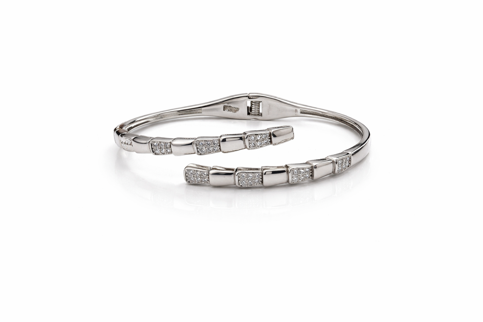 Design: Contemporary Open Bangle Design with Geometric Rectangular Link Structure