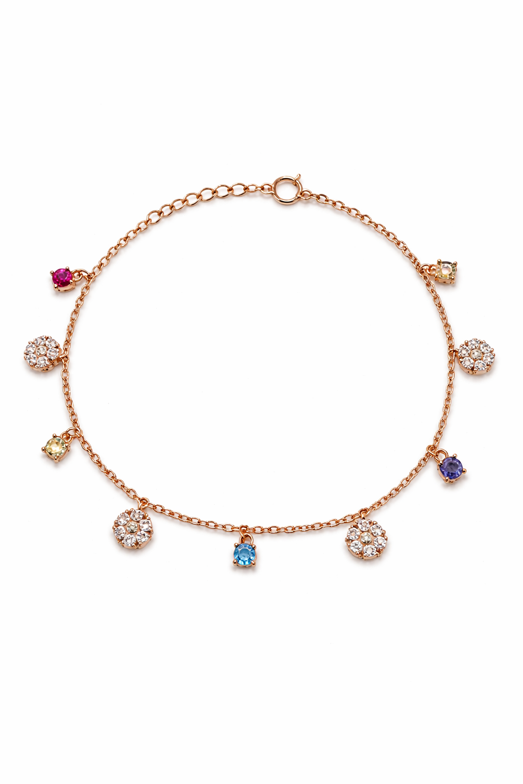 Design: Elegant Charm Featuring Multi-Colored Stone Drops and Pave Floral Discs